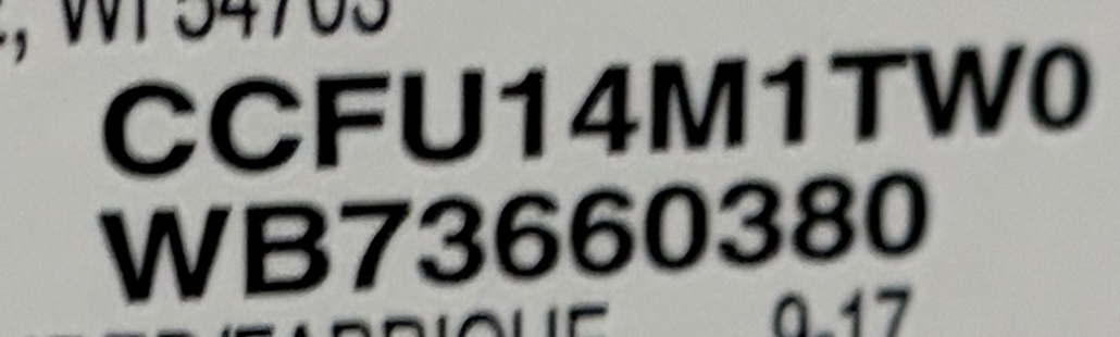 Model/Serial# CCFU14M1TW0 / WB73660380