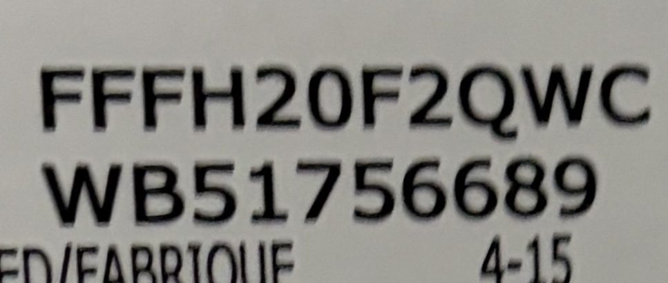 Model/Serial#: FFFH20F2QWC / WB51756689