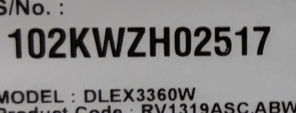 LG Electric Dryer (Stackable) DLEX3360W, White – Warranty