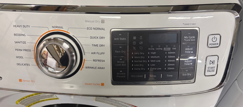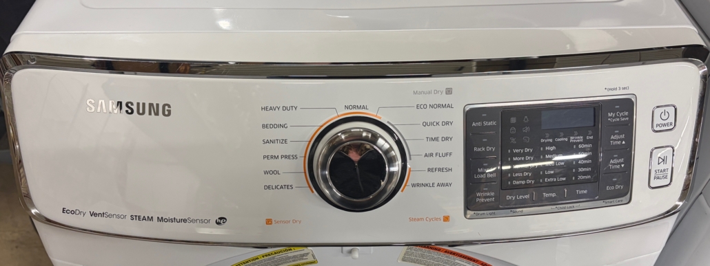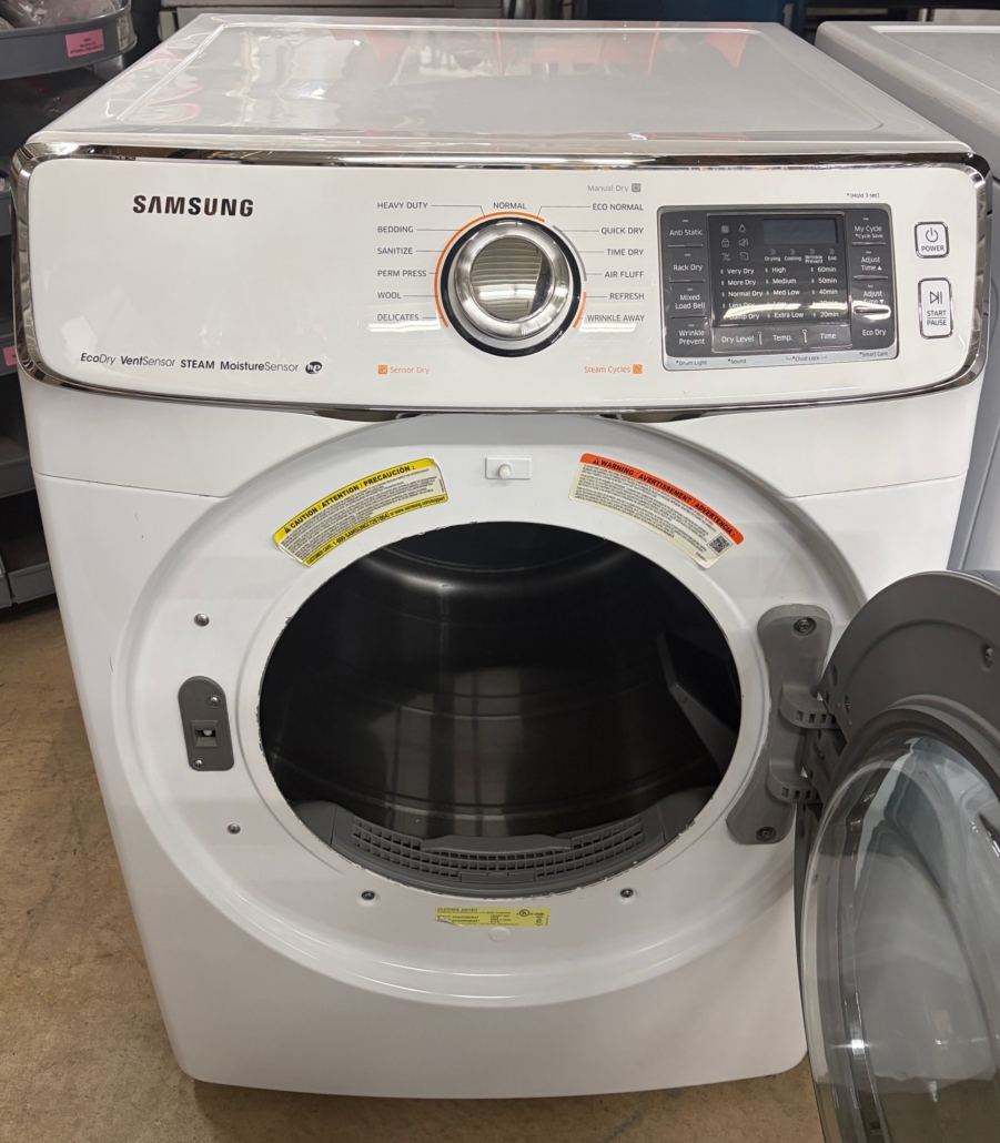 Awesome dryer with 13 Dry Cycles, 5 Temperature Settings, Steam, Eco Dry, Vent Sensor, Sanitize Cycle, Wrinkle Prevent, Smart Care, My Cycle, Reversible Door and Sensor Dry Moisture Sensor!