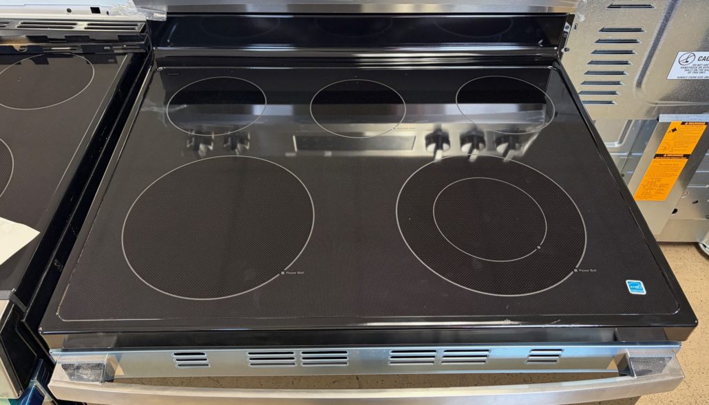 Awesome range with 5 Smoothtop Elements, 5.3 cu. ft. Oven Capacity, Power Boil™ Burner, Warming Zone, Storage Drawer, Crisp Mode, Enhanced Shabbos Mode Built In, and Self & Steam Clean!