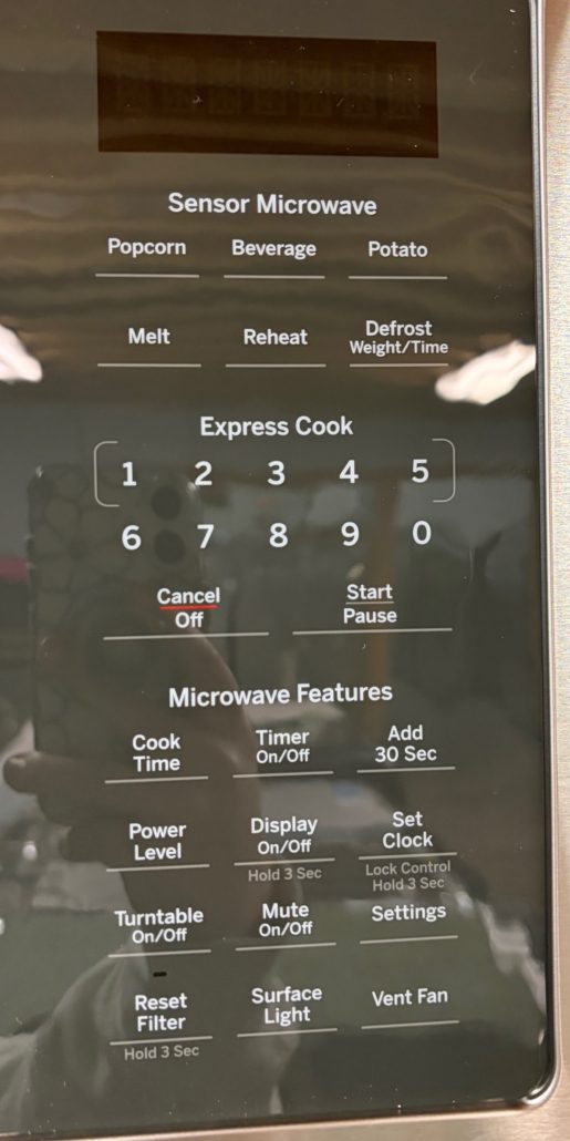 Beautiful microwave with 1,000 Watts, 300 CFM Ventilation, 10 Power Levels, Sensor Cooking, Melt Feature, Add 30 Seconds Button, Weight and Time Defrost, Clock and Timer and Charcoal Filter!