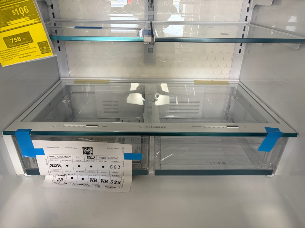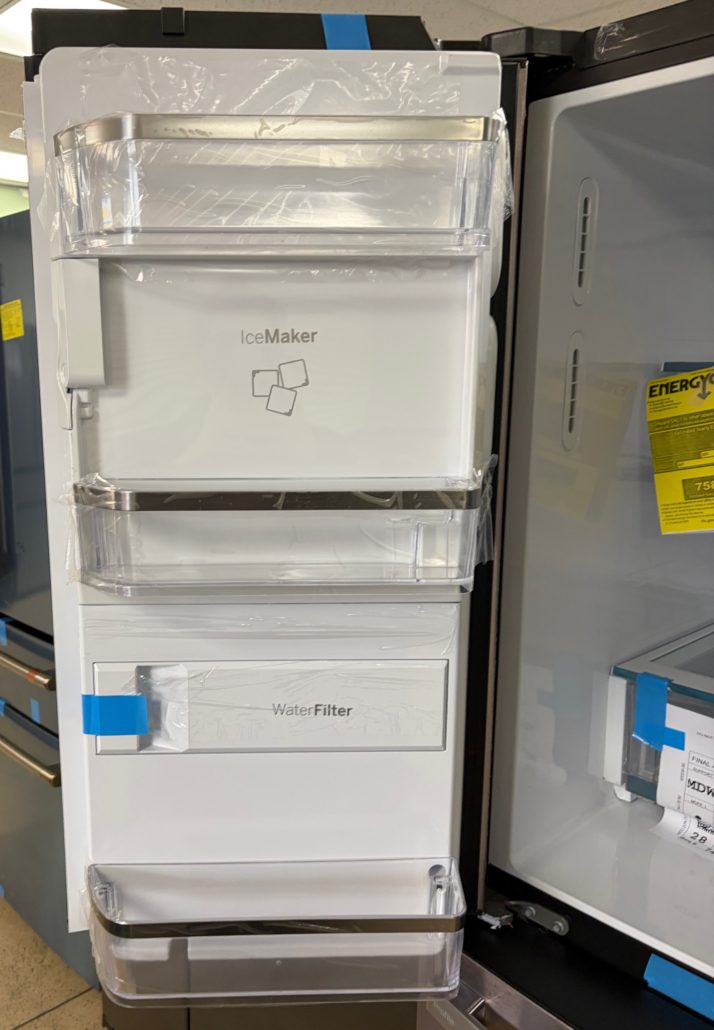 Really neat fridge with Door in Door, Adjustable Temperature Drawer, LED Light Wall, Enhanced Shabbos Mode Capable, WiFi, Filtered Water/Ice Dispenser, and ENERGY STAR® Qualified!