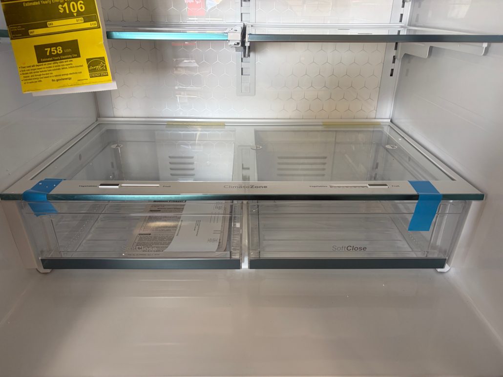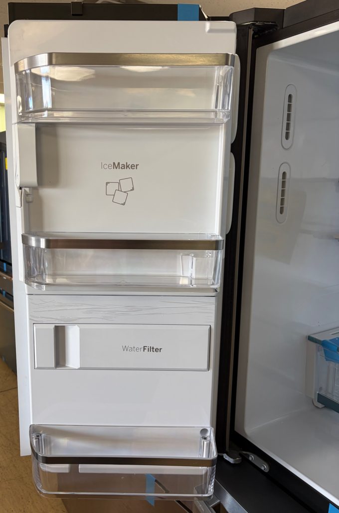 Really neat fridge with Door in Door, Adjustable Temperature Drawer, LED Light Wall, Enhanced Shabbos Mode Capable, WiFi, Filtered Water/Ice Dispenser, and ENERGY STAR® Qualified!