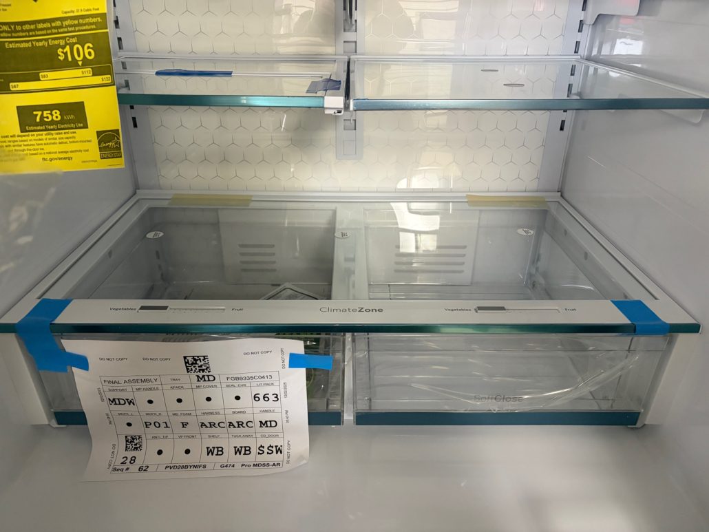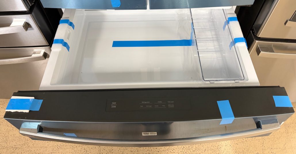 Really neat fridge with Door in Door, Adjustable Temperature Drawer, LED Light Wall, Enhanced Shabbos Mode Capable, WiFi, Filtered Water/Ice Dispenser, and ENERGY STAR® Qualified!