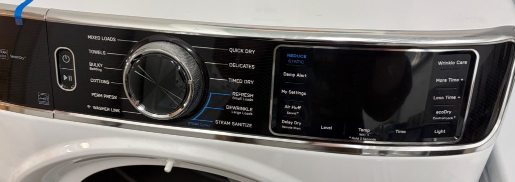 Great dryer with Steam Cycle, Washer Link, Built In Wifi, Steam Sanitize, Quick Dry, Reduce Static, Wrinkle Care, Damp Alert, 4 Way Venting, Reversible Door, ADA Complaint and Energy Star Qualified!