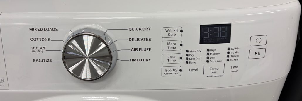 Awesome dryer with Sanitize Cycle, SmartHQ™, Wrinkle Care, Reversible Door, Damp Alert, 4 Way Venting, ADA Compliant and Energy Star Certified!