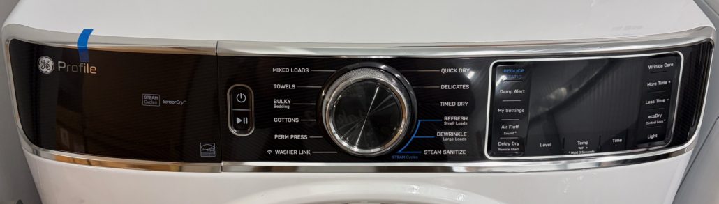 Great dryer with Steam Cycle, Washer Link, Built In Wifi, Steam Sanitize, Quick Dry, Reduce Static, Wrinkle Care, Damp Alert, 4 Way Venting, Reversible Door, ADA Complaint and Energy Star Qualified!