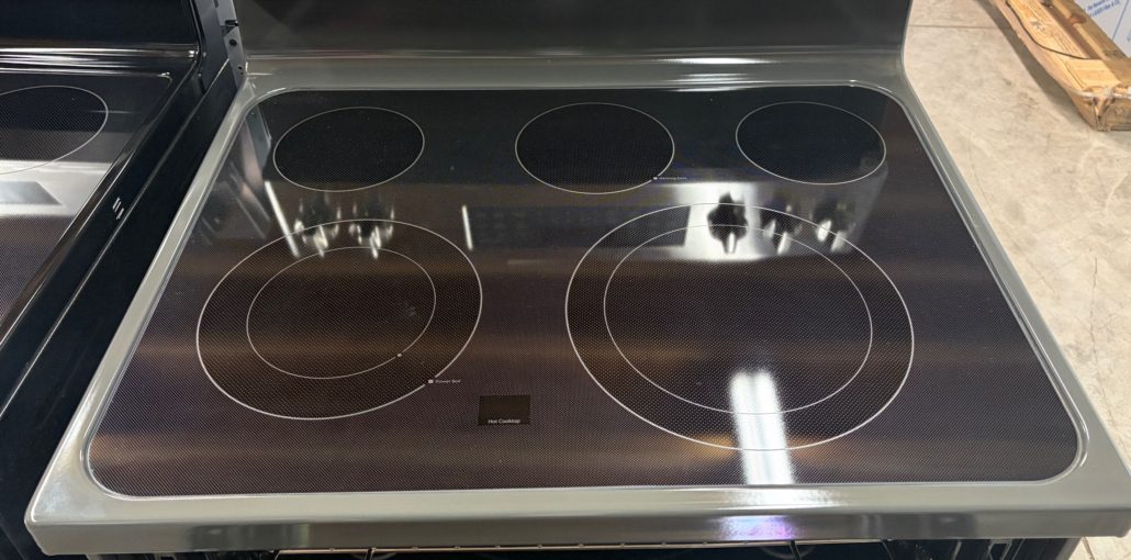 Awesome range with 5 Radiant Elements, 6.6 Cu. Ft. Total Capacity, Ceramic Glass Smoothtop, Steam Clean, Power Boil Element, Warming Zone, Convection Oven, 8-Pass Bake Element, Fast Preheat, and Sabbath Mode!
