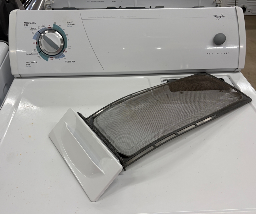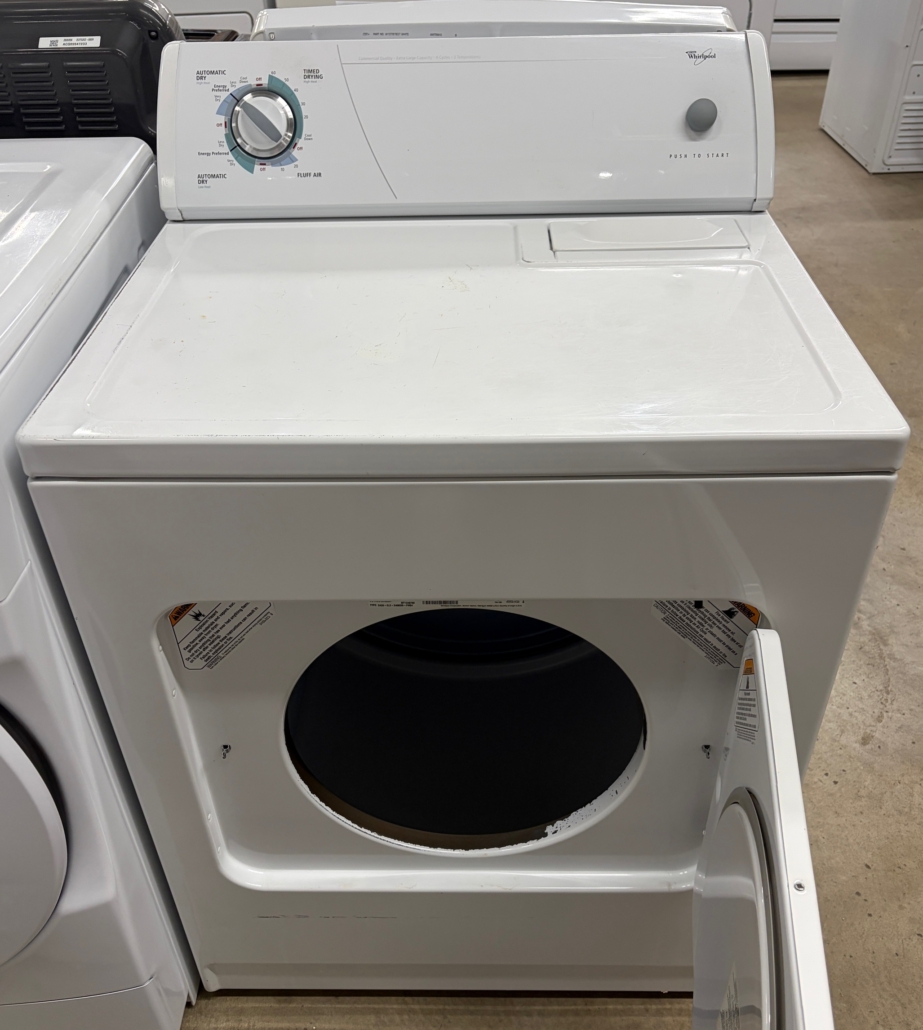 Awesome dryer with 4 Automatic Cycles, 3 Temperature Settings, 5 Timed Dry Options, Fluff Air Cycles, Top-Mounted Lint Filter, DuraWhite Interior, and SpillGuard Top!